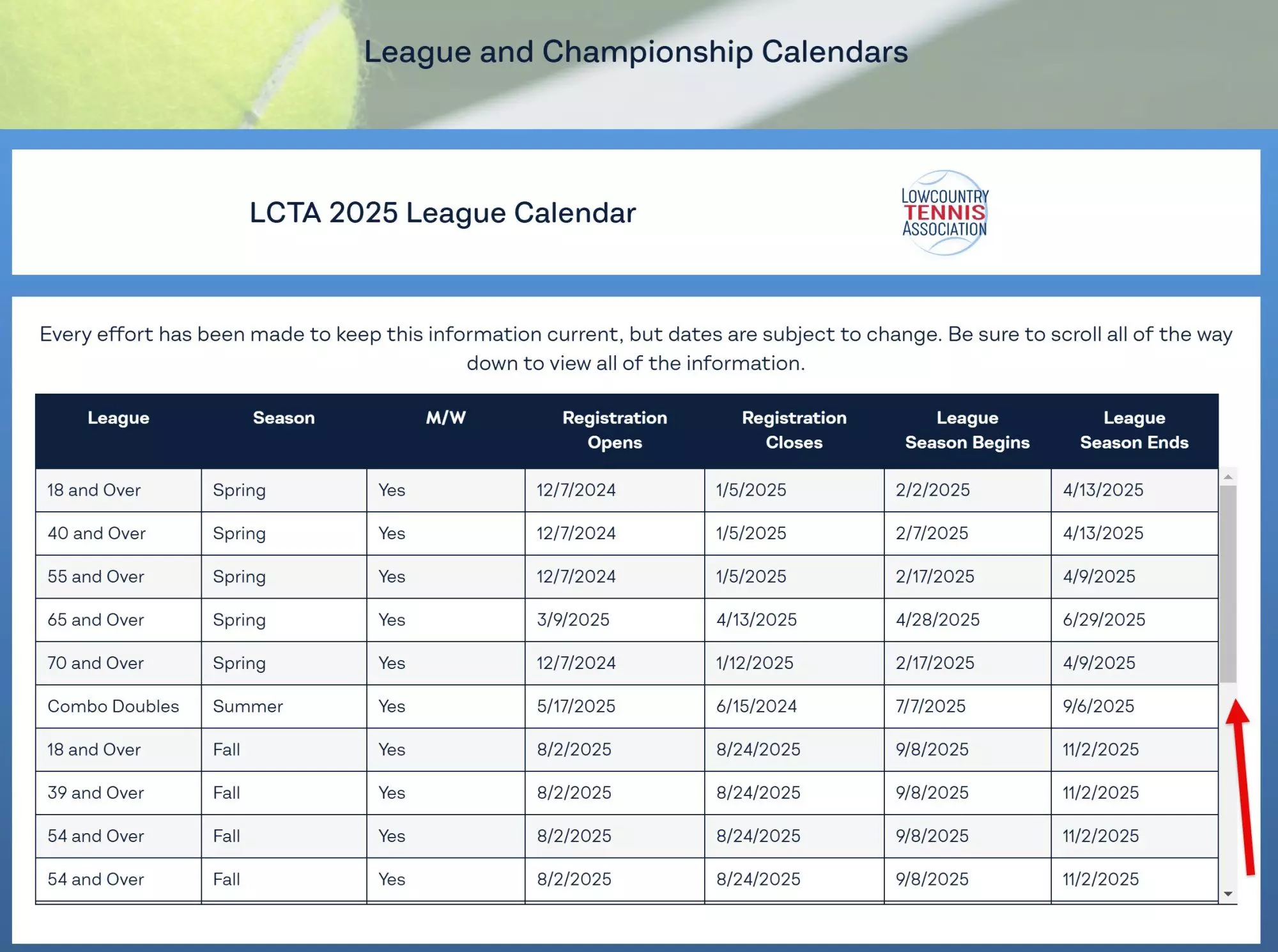 - 2025 LCTA Captains and Players Meeting – Wed. Jan. 8th 5:30 PM at the Daniel Island Club