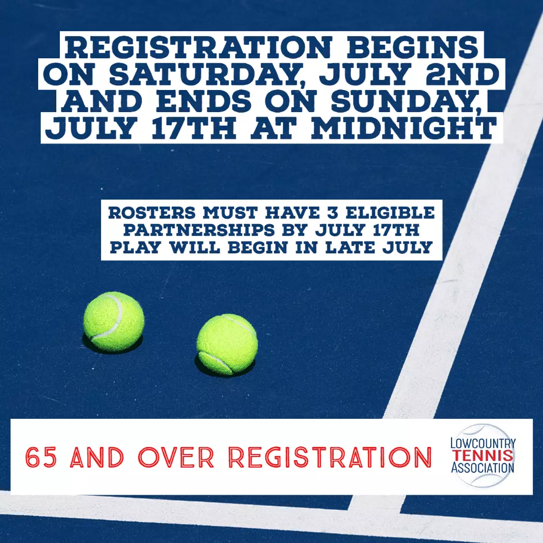 65 & Over Registration will begin Saturday, July 2nd and ends on Sunday, July 17th at midnight. Rosters must have 3 eligible partnerships by July 17th Play will begin in late July.