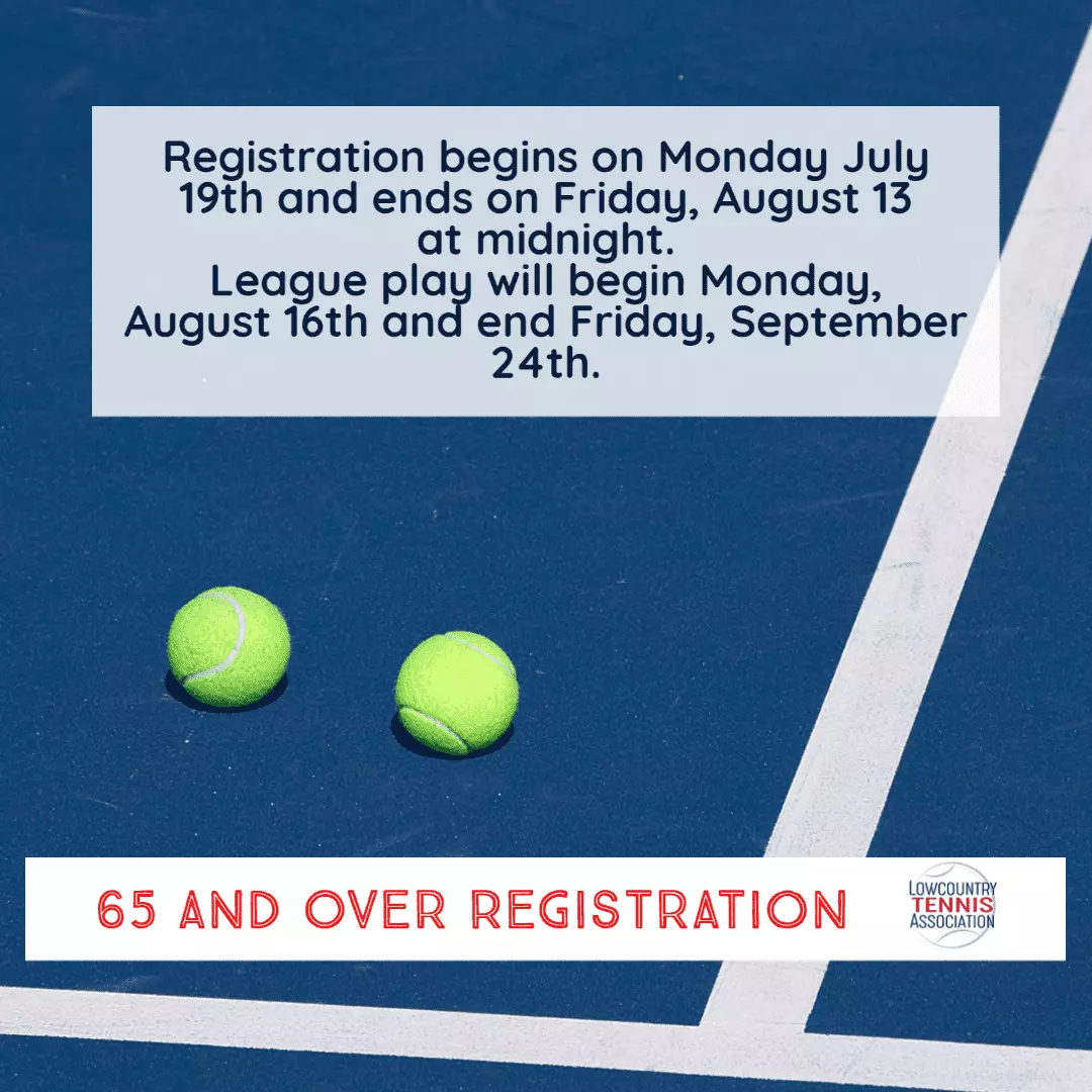 LCTA 2021 65 and Over Registration Dates Registration: Monday, July 19th – Friday, August 13th League Season: Monday, August 16th – Friday, September 24th Only 3 matches needed to qualify for State Championships in Hilton Head October 16-18, 2021.