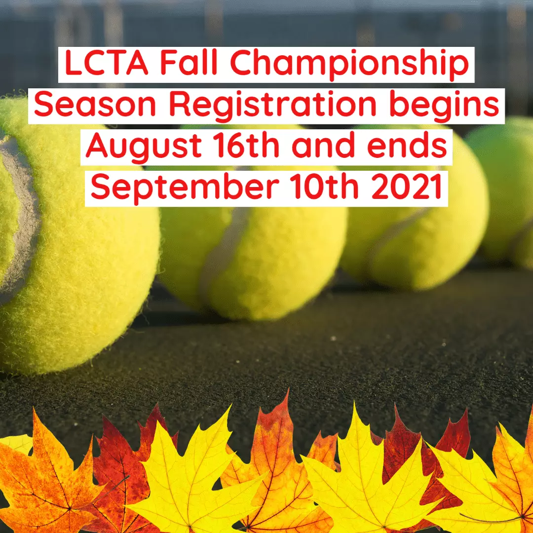 LCTA Fall Championship Season registration begins August 16th and ends September 10th 2021.