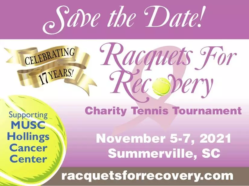 The 17th Annual Racquets for Recovery Tennis Tournament Nov. 5 -7, 2021 To register or learn more visit https://racquetsforrecovery.com/ We’re back! 2021 Tournament 5 – 7 November “Taking a Hard Swing at Breast Cancer” The 17th Annual Racquets for Recovery Tennis Tournament